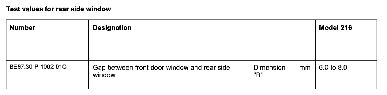 Test Values For Rear Side Window: