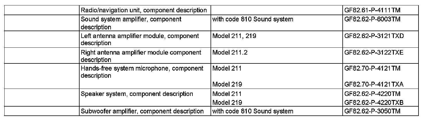 The FM receiver of the radio control panel and navigation unit receives the traffic messages from the left antenna amplifier module (A2/64) and the right antenna amplifier module (A2/65) (model 211.2 only) and relays it to the traffic data recorder in the radio control panel and navigation unit.