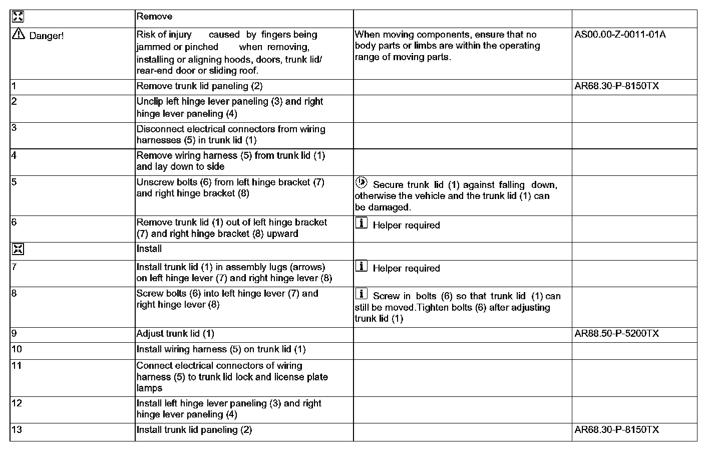 AR88.50-P-5000TX Remove/Install Trunk Lid