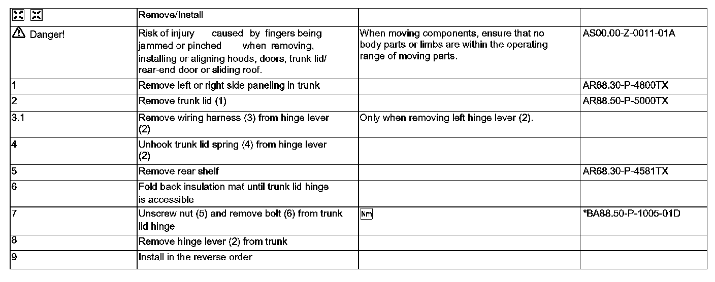 AR88.50-P-5120TX Remove/Install Hinge Lever For Trunk Lid