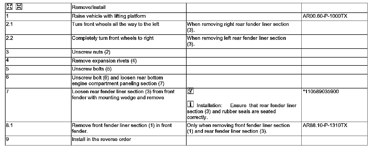 AR88.10-P-1300TX Remove/Install Fender Liner In Front Fender
