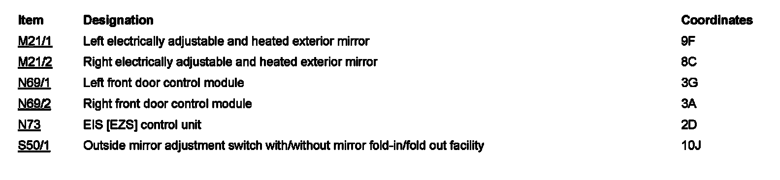PE88.79-U-2050XAA Function Schematic For Mirror Adjustment Electrical System