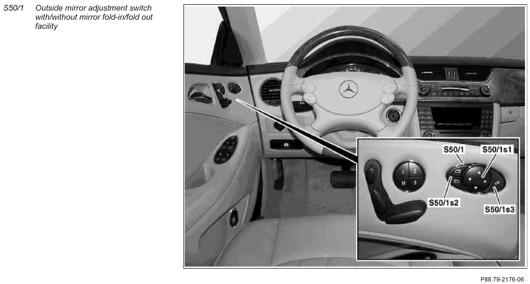 ^ Outside mirror fold-in/out switch (S50/1s3) (with code (500) Folding left/right outside mirror)
