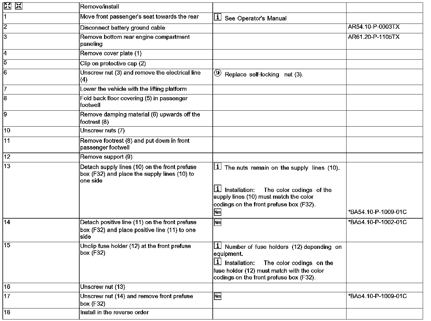 AR54.15-P-1330TX Remove/Install Front Prefuse Box
