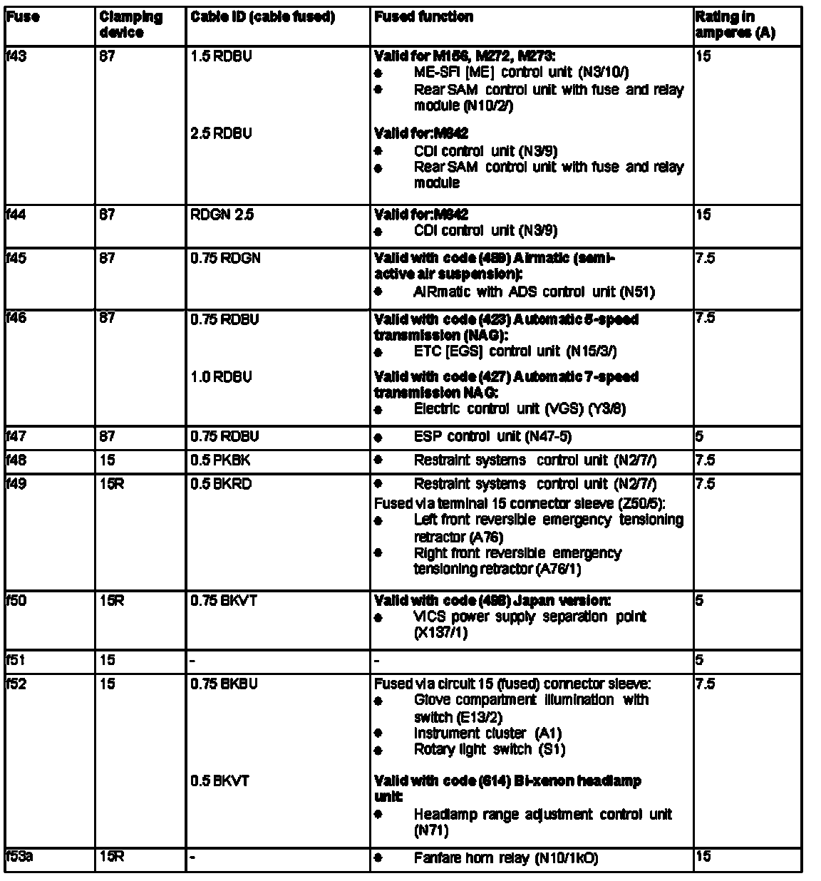 GF54.15-P-1256-03TXB Fuse Assignment of Fuse and Relay Box In Left Engine Compartment