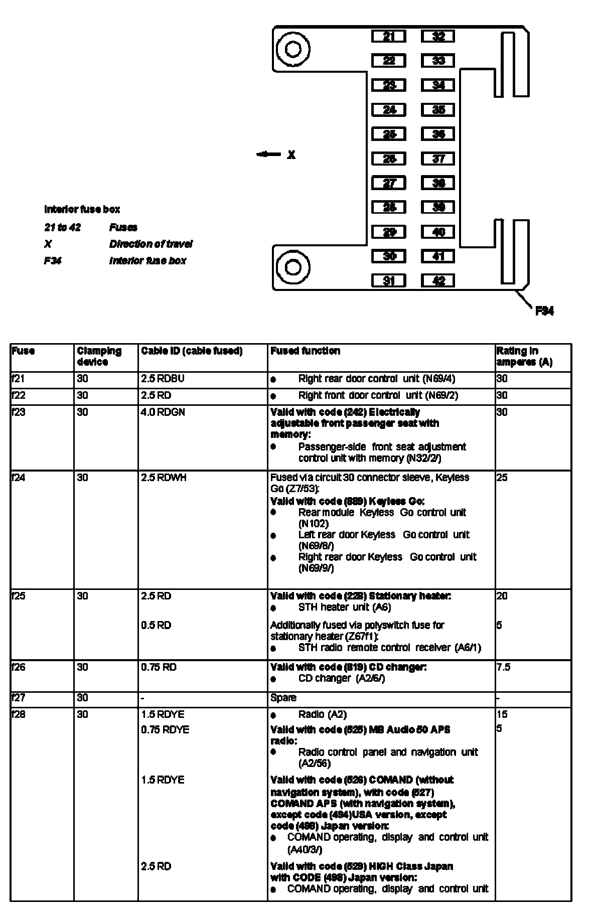 GF54.15-P-1256-04TXB Fuse Assignment of Fuse Box In Interior Compartment on Driver's Side