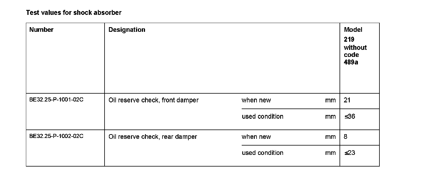 Test values for shock absorber:
