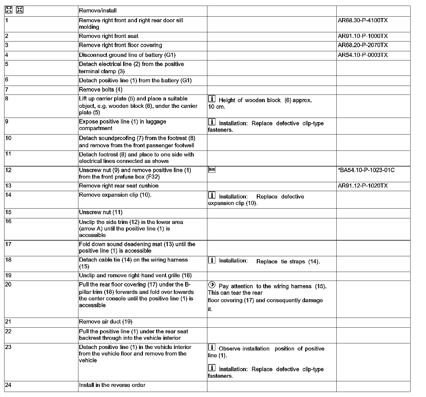 AR54.18-P-0057TX Remove/Install Line From Positive Terminal Of On-board Electrical System Battery To Front Prefuse Box