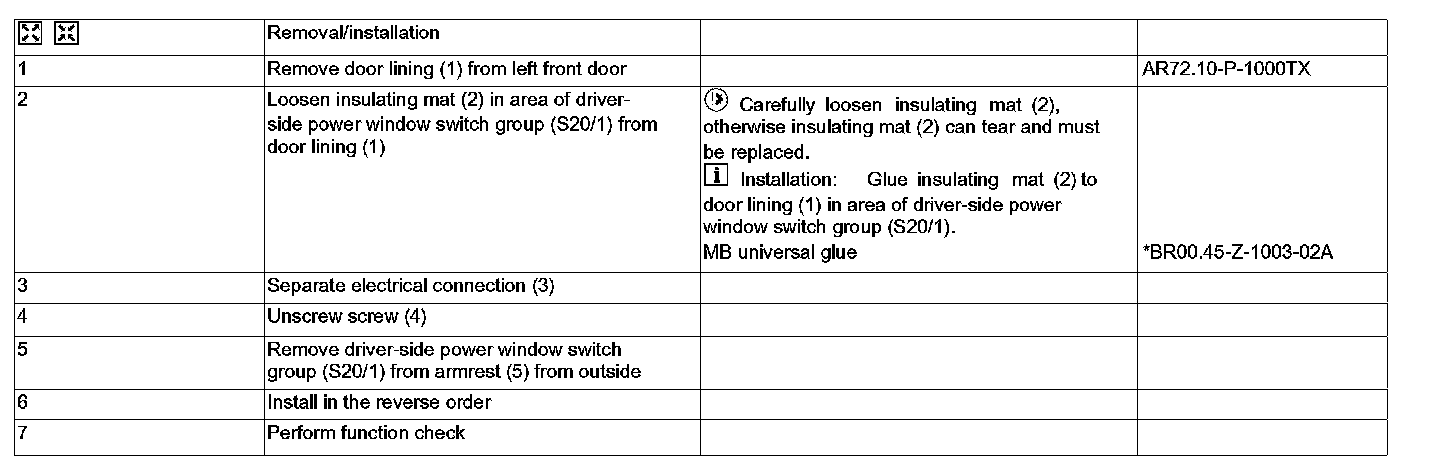 AR72.29-P-0110TX Remove/Install Front Door Power Window Switch Group