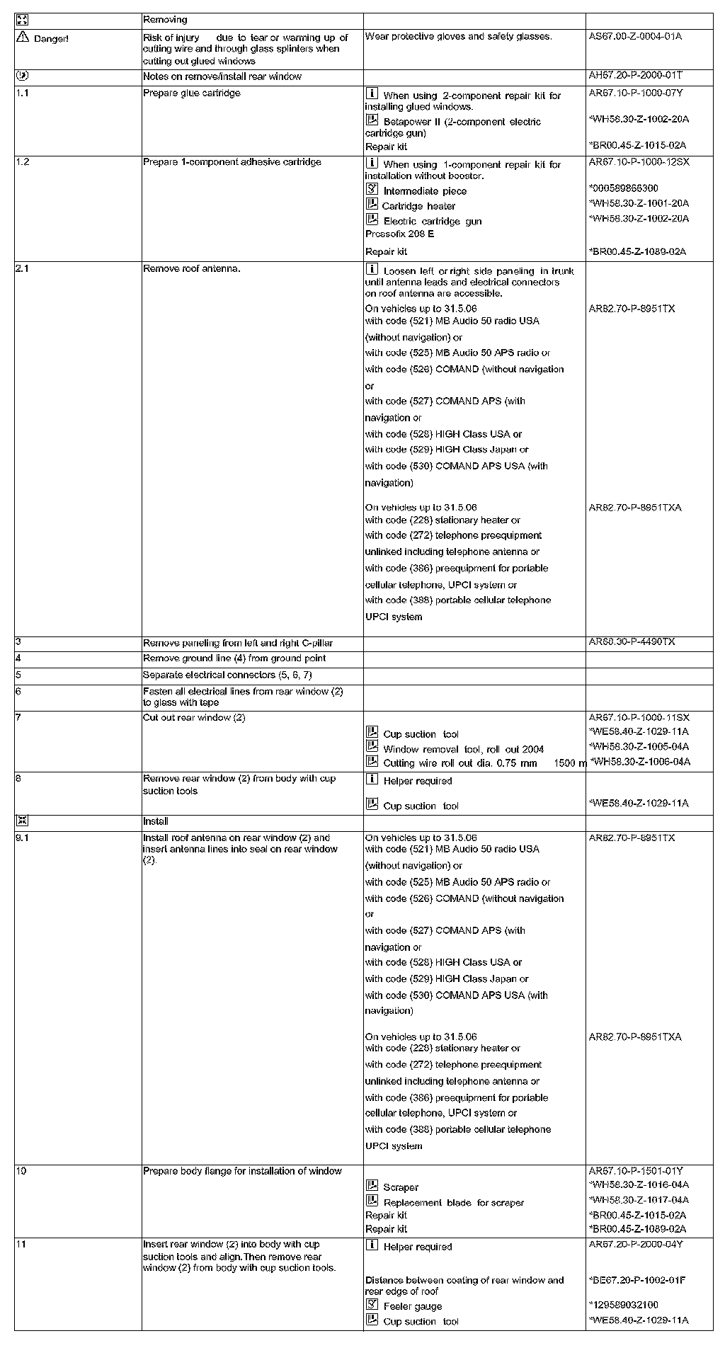 AR67.20-P-2000Y Remove/Install Rear Window