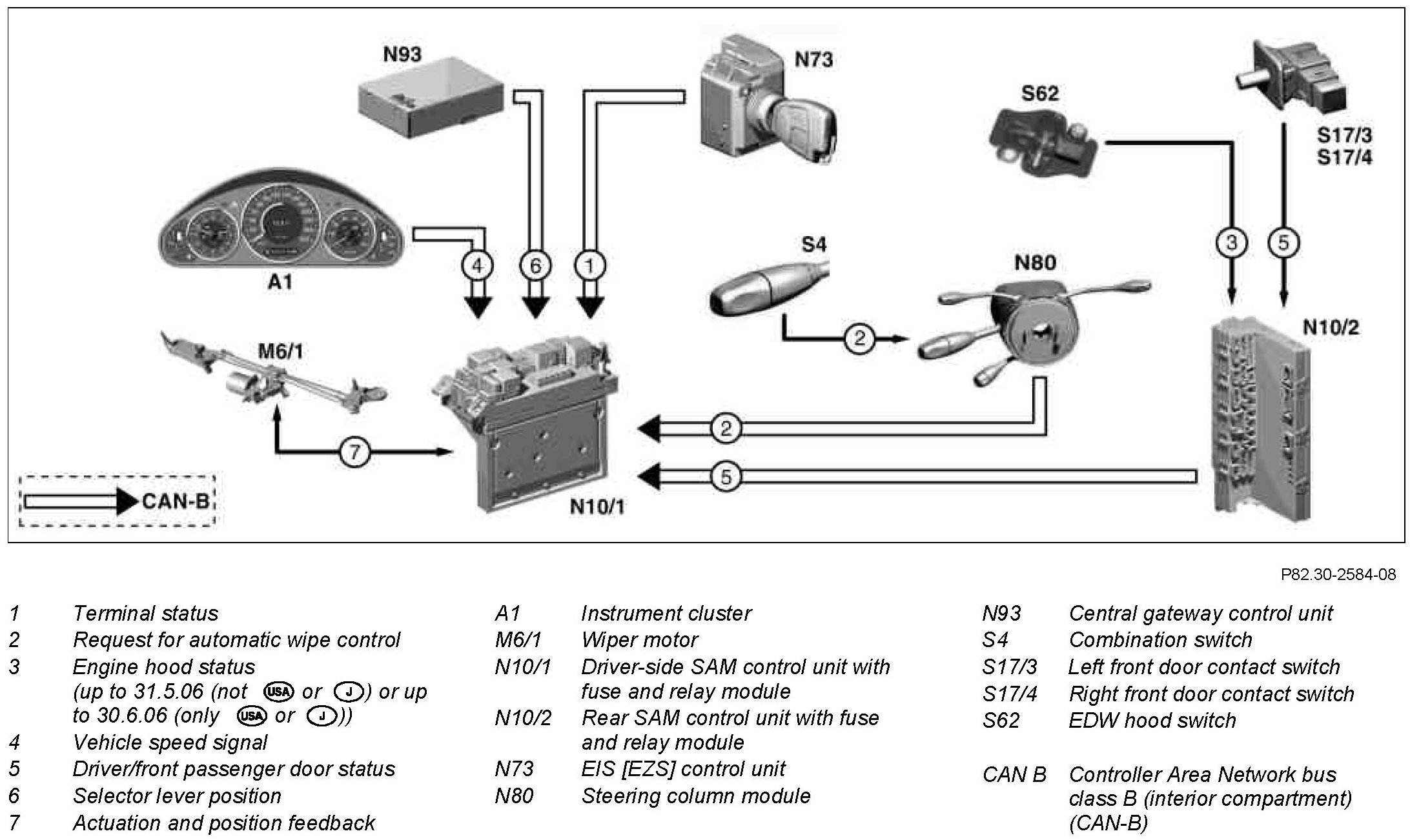 On vehicles up to 31.5.06 (not (United States Of America) or (Japan)) or up to 30.6.06 (only (United States Of America) or (Japan)) the wipe cycle is also suppressed when the engine hood is unlocked.