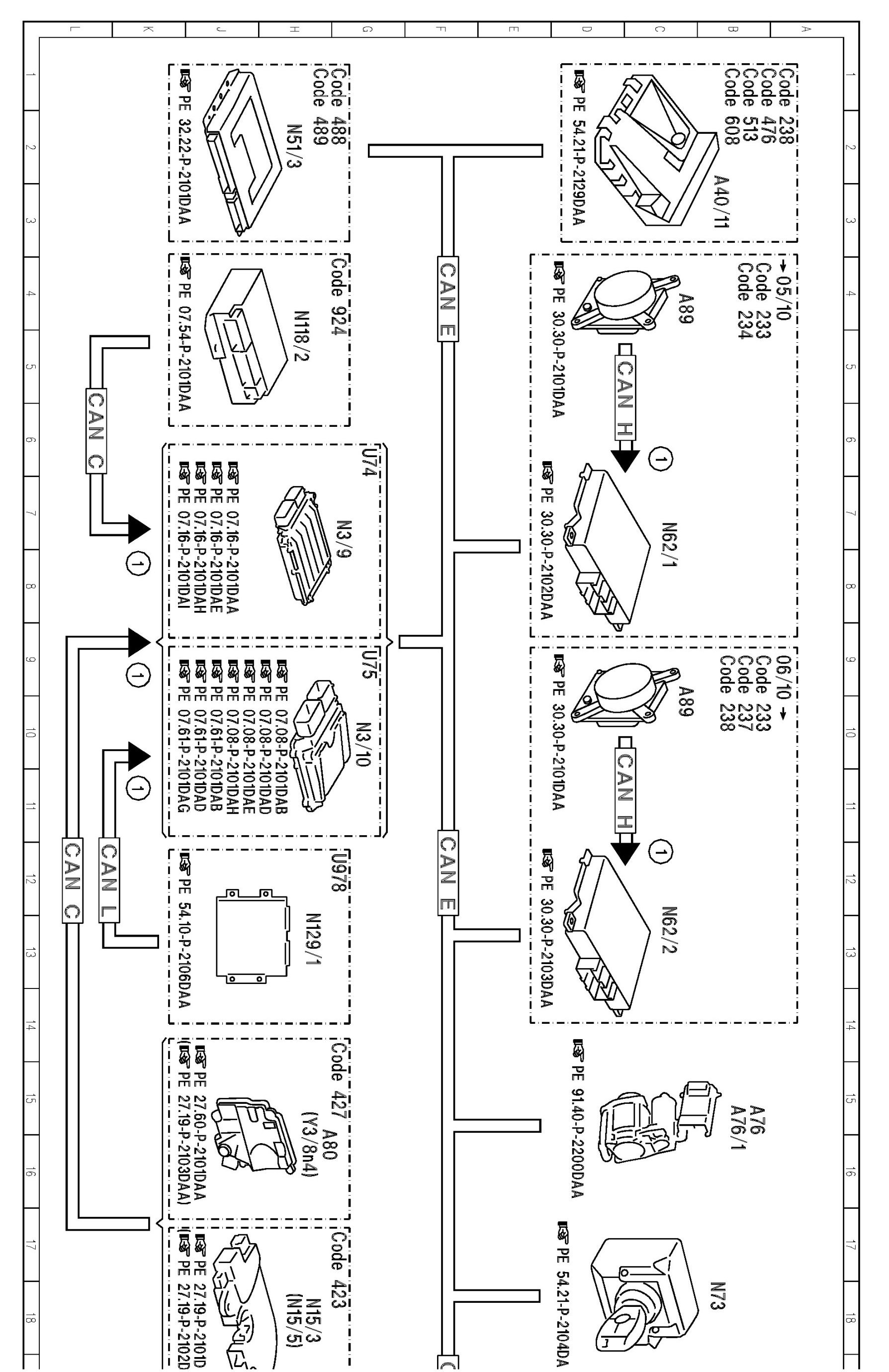 PE54.30-P-2054DAA Electrical Function Schematic Of Instrument Cluster, Control/Warning Message