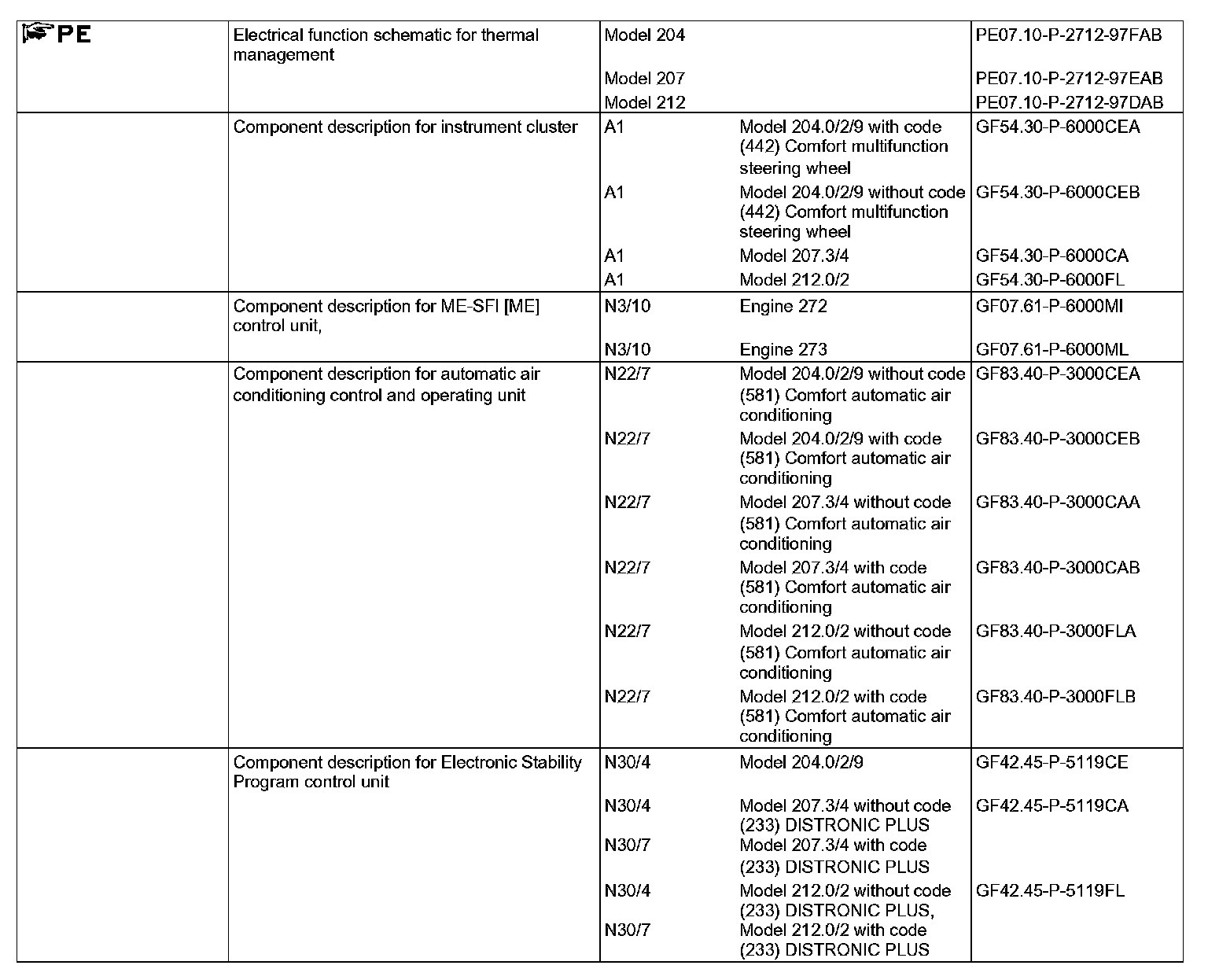 - Electronic Stability Program control unit (N30/4) or Electronic Stability Program Premium control unit (N30/7) (for DISTRONIC PLUS), vehicle speed via the chassis CAN