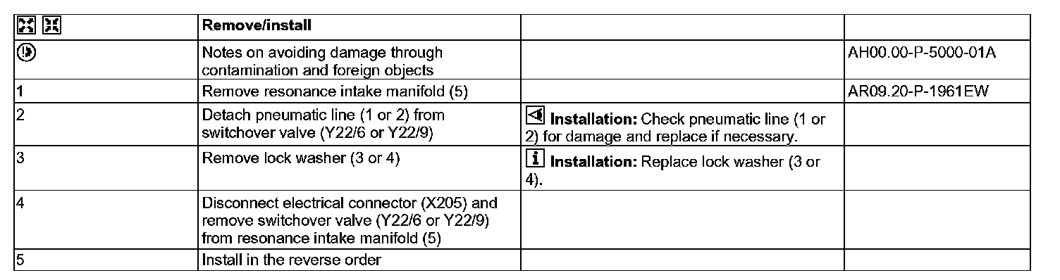 AR09.20-P-1990EW Remove/Install The Tumble Flap And Resonance Flap Switchover Valve At The Intake Manifold