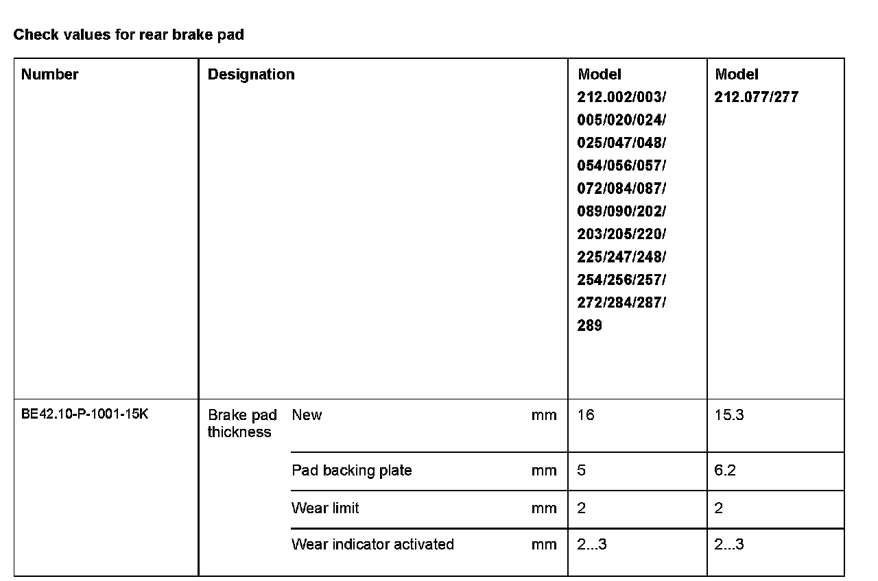 BE42.10-P-1000-15K Check Values For Rear Brake Pad