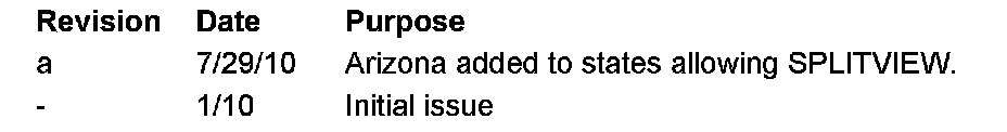 Due to various state laws, SPLITVIEW is currently only allowed in certain states. As of July 29, 2010, the state of Arizona now allows SPLITVIEW.