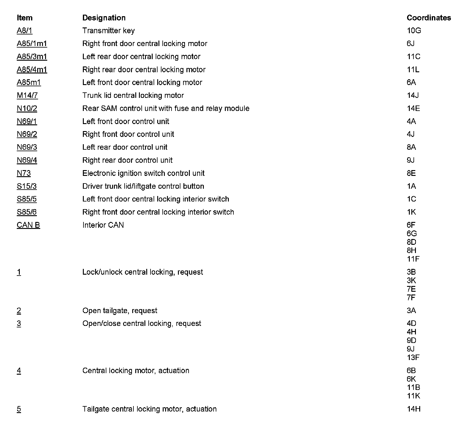 PE80.20-P-2053DAB Electrical Function Schematic For Central Locking With Interior Switch, Locking And Unlocking