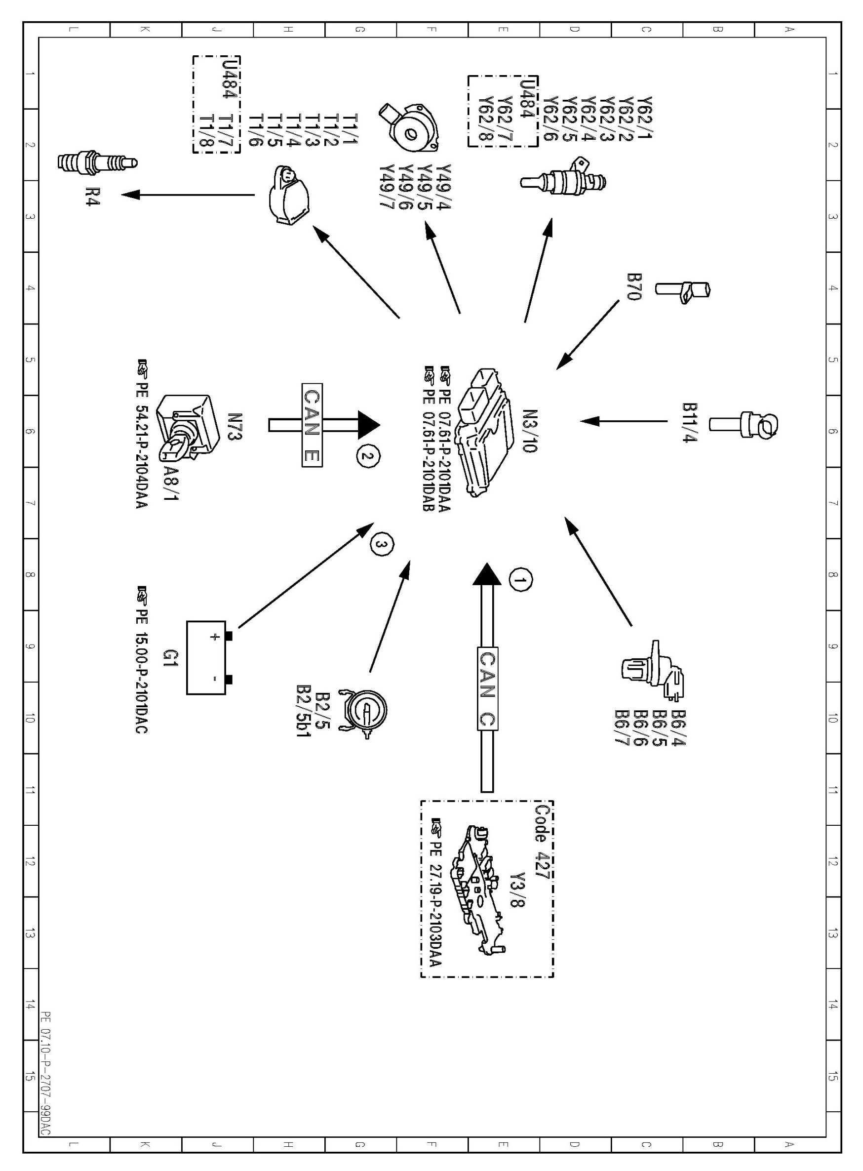 PE07.10-P-2707DAC Electrical Function Schematic For Start Phase, Post-Start Phase And Warm-up Enrichment