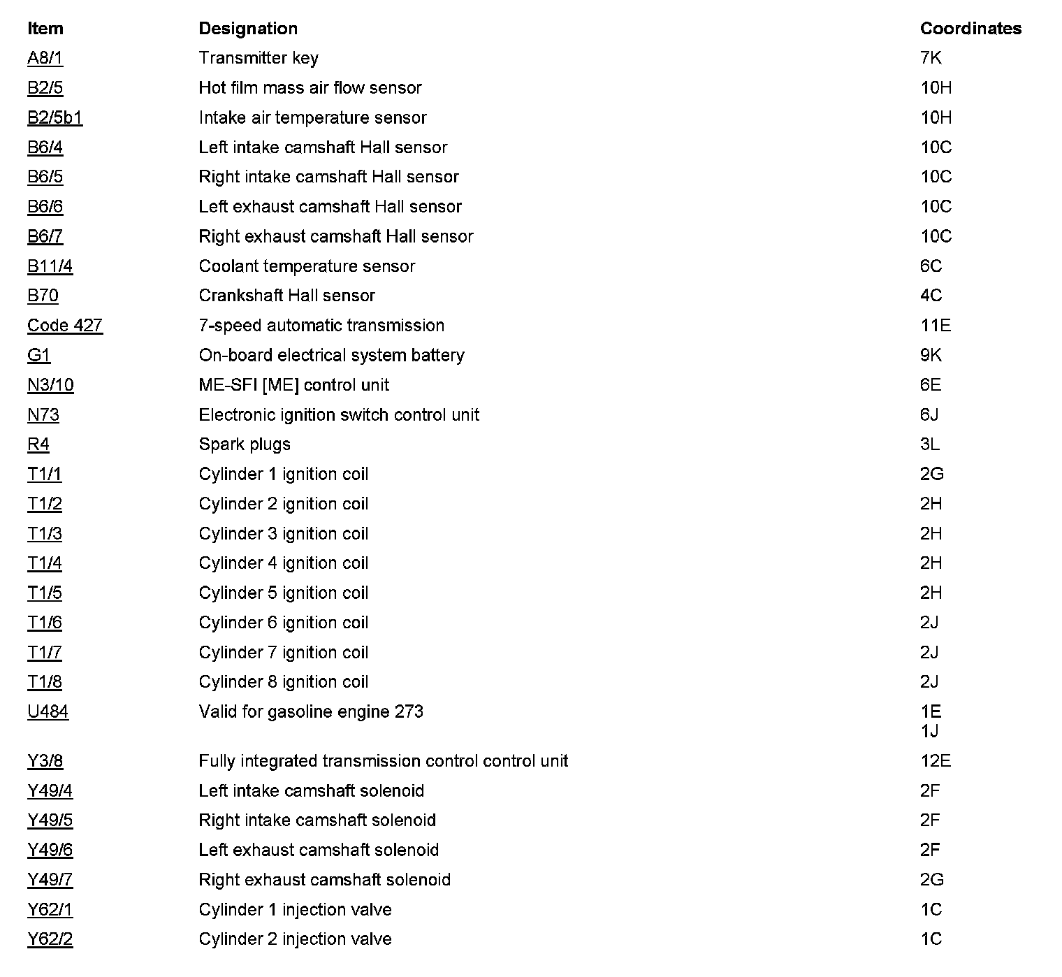 Component Locations: Component Location photographs can be found via their component names at the vehicle level. Locations