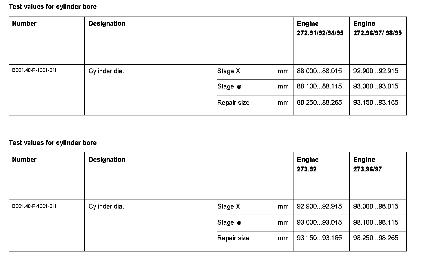 BE01.40-P-1000-01I Test Values For Cylinder Bore