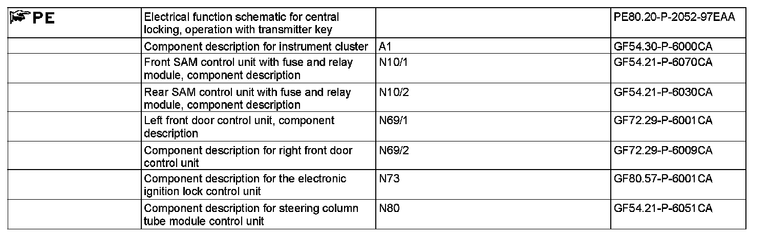 GF80.20-P-2002CA Operating Central Locking With Transmitter Key, Function