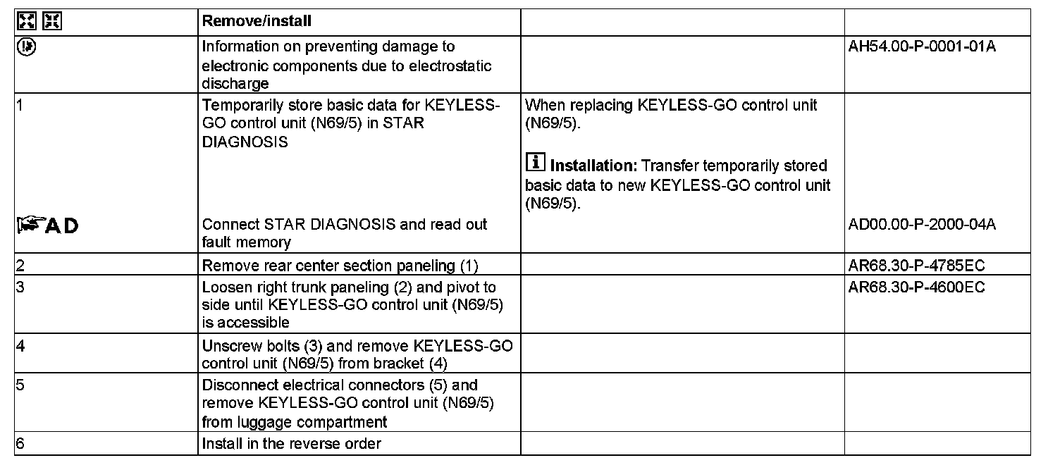 AR80.35-P-0001EC Remove/Install Keyless Go Control Unit
