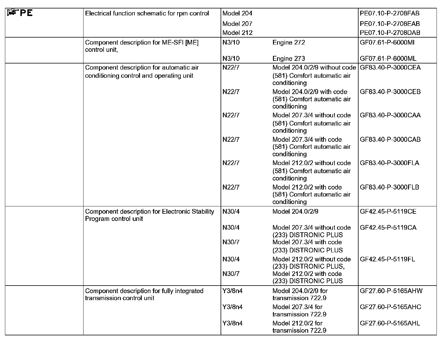 - Electronic Stability Program control unit (N30/4) or Electronic Stability Program Premium control unit (N30/7) (for DISTRONIC PLUS), vehicle speed via the chassis CAN (CAN E)