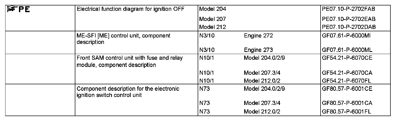 Computer power-down is determined by the ME-SFI control unit and lasts about 5 s. It can, however, last for some minutes due to various functions (such as On-board Diagnosis (OBD), Drive Authorization System (DAS), thermal management).