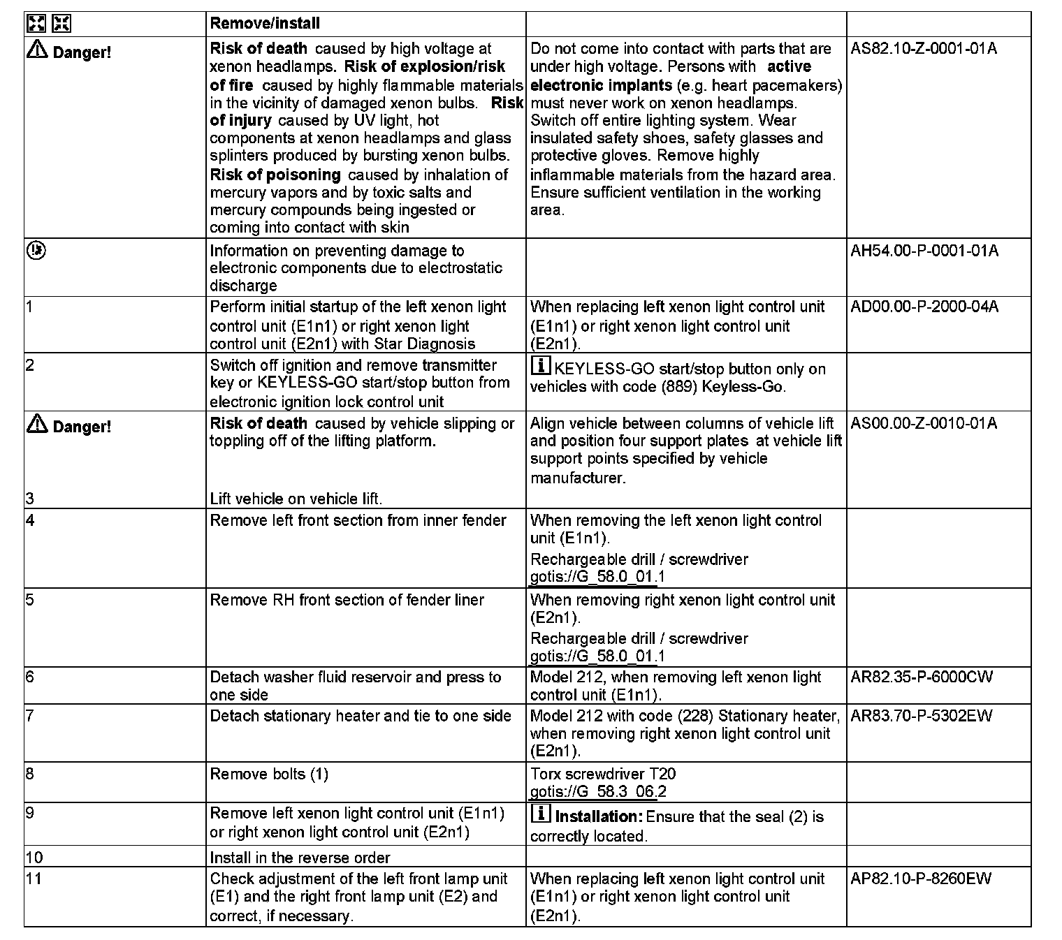 AR82.10-P-4632EW Remove/Install xenon Headlamp Control Unit