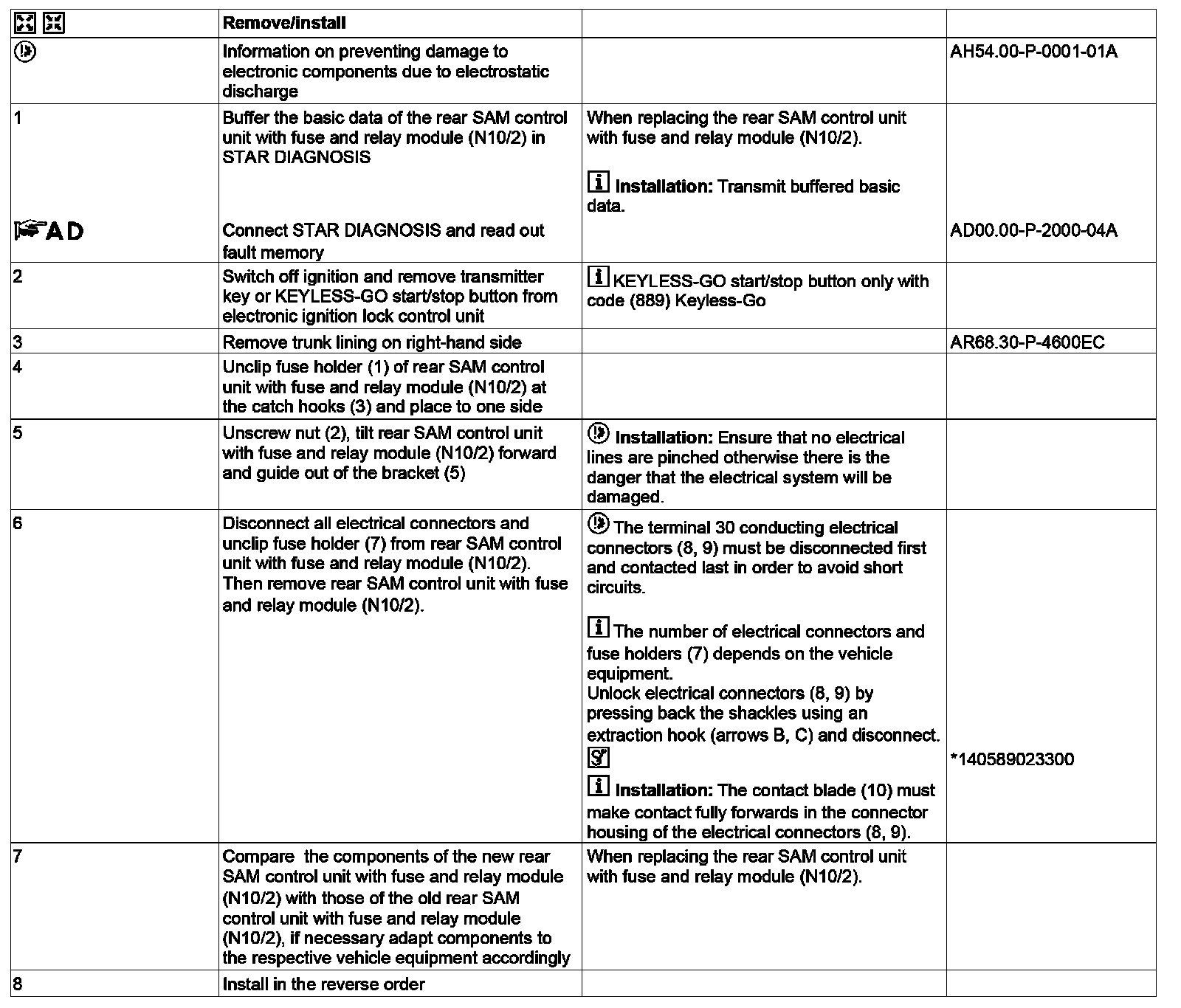 AR54.21-P-1258EC Remove/Install SAM Control Unit With Fuse and Relay Box In Trunk