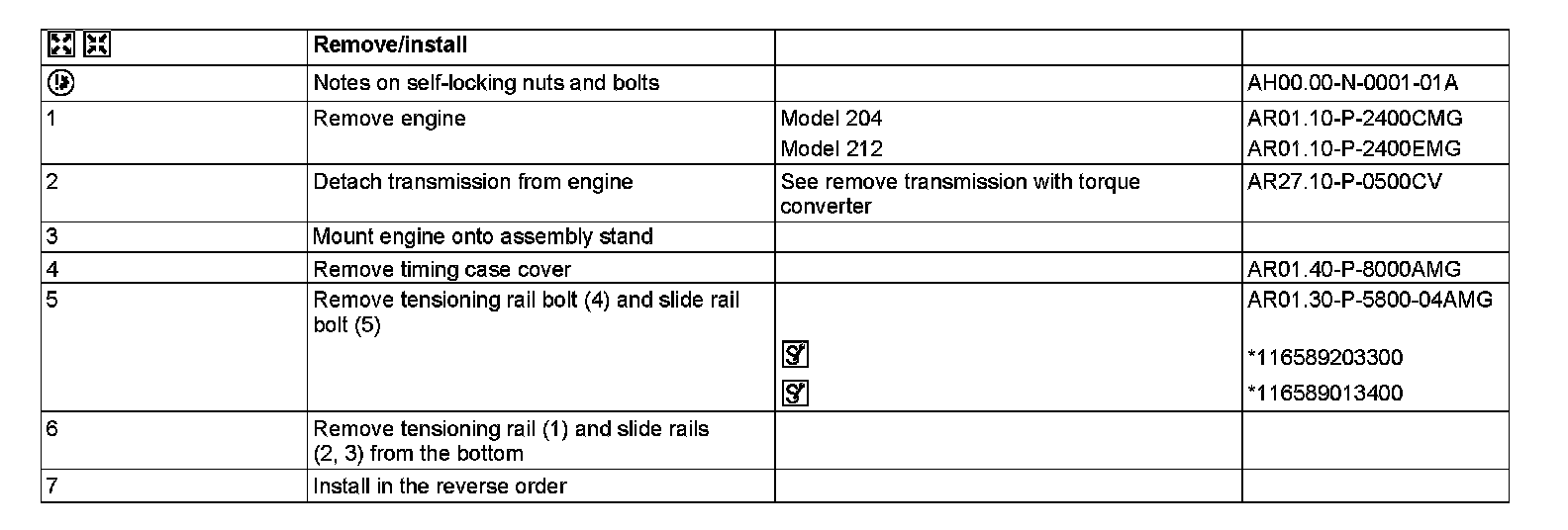 AR05.10-P-8500CMG Remove/install tensioning rail and slide rail in timing case cover