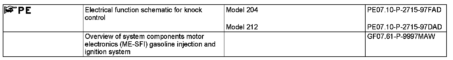 The ME-SFI [ME] control unit manages the knock control according to the following sensors and signals:
