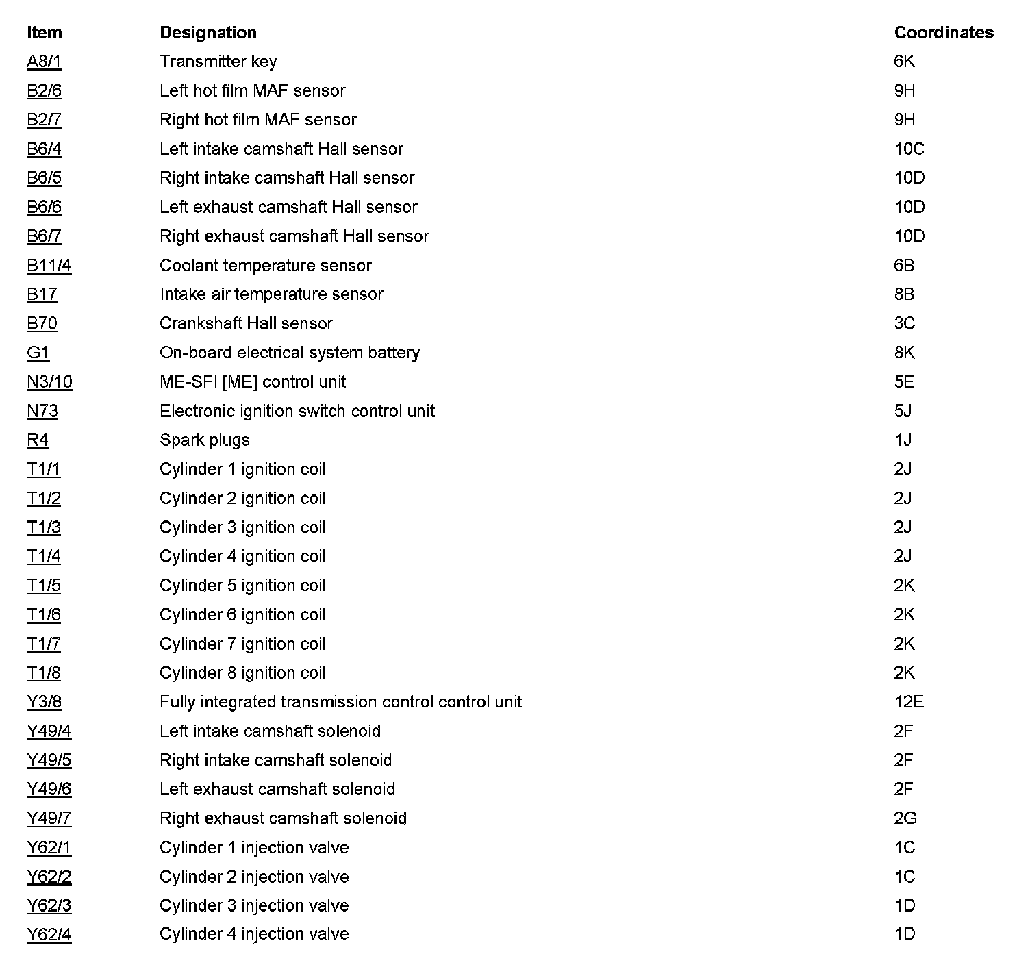 Component Locations: Component Location photographs can be found via their component names at the vehicle level. Locations