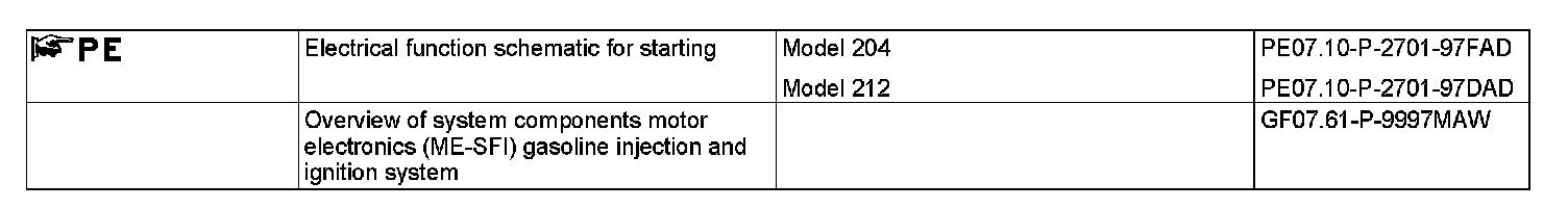 When ignition key (transmitter key (A8/1)) is moved to the start position, the ME-SFI [ME] control unit receives the "circuit 50 signal" from the electronic ignition lock control unit via the chassis CAN.