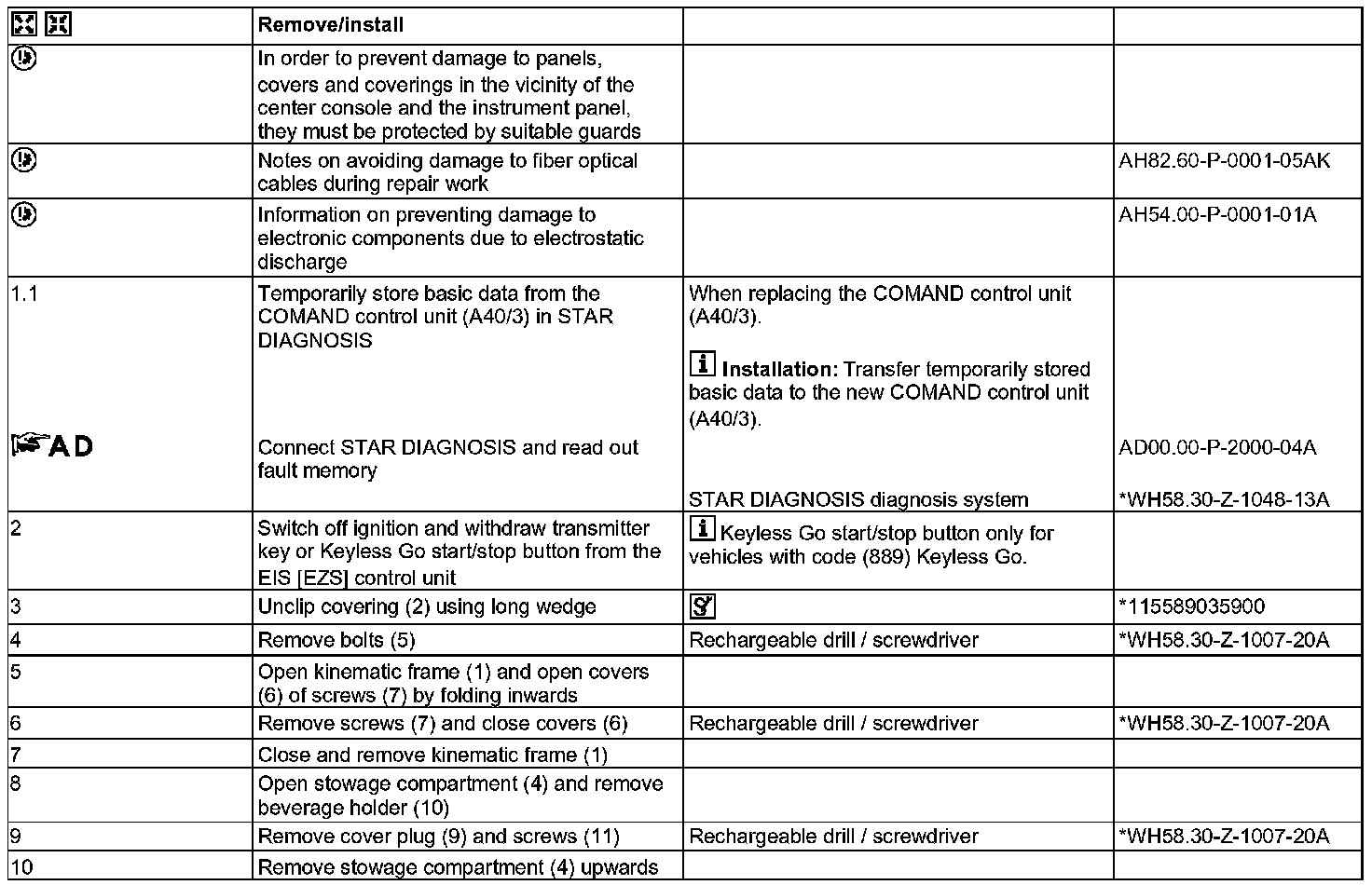 AR82.85-P-1100SY Remove/Install COMAND Control Unit