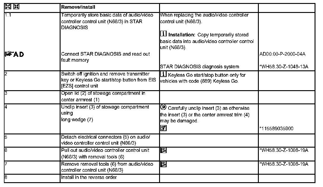 AR82.60-P-2000SX Remove/Install Audio/video Controller Control Unit