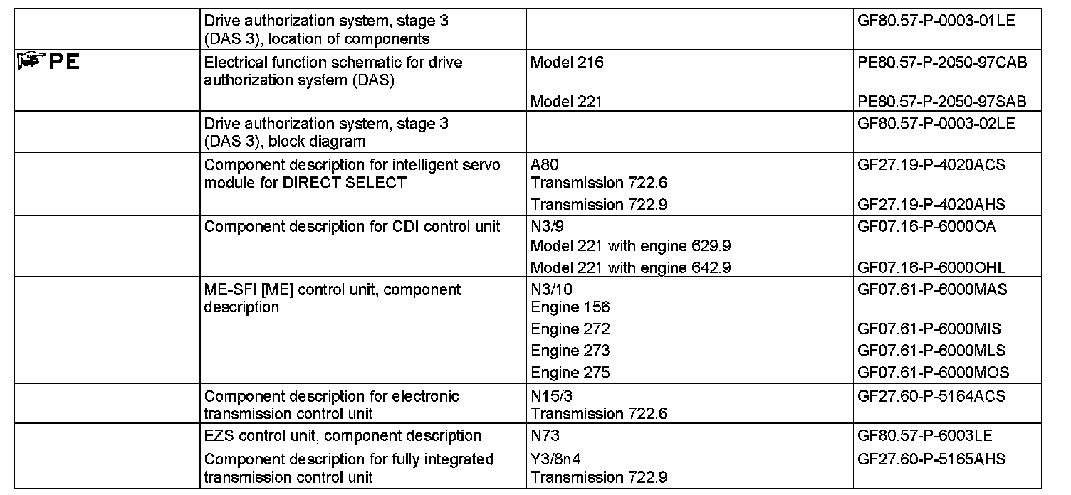 Circuit 15 is actuated by turning transmitter key to position "C". The status of circuit 15 is output to chassis CAN and interior CAN. Power-intensive consumers are supplied by circuit 15X. Parallel to this, an encrypted DAS 3 request is transmitted to the ME-SFI control unit or CDI control unit, electronic transmission control unit or fully integrated transmission control unit and intelligent servo module for DIRECT SELECT.