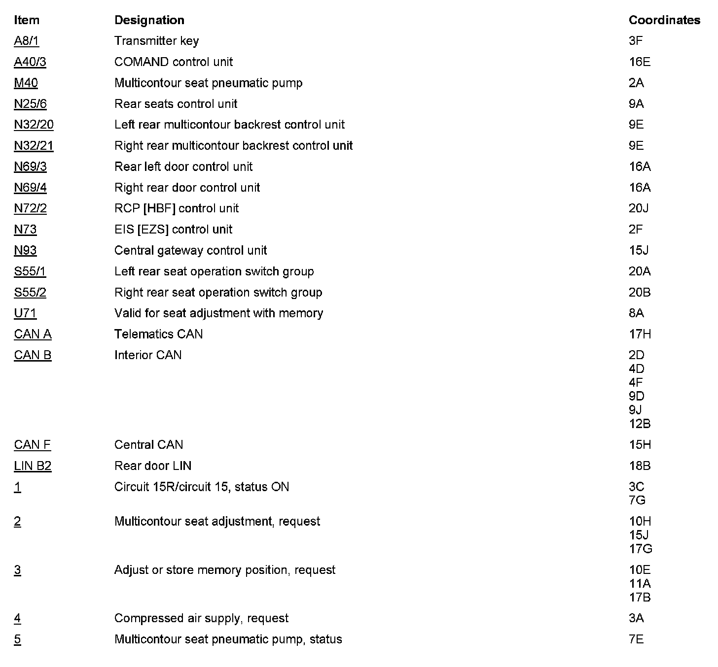 PE91.25-U-2051SAA Electrical Function Schematic For Multicontour Seat