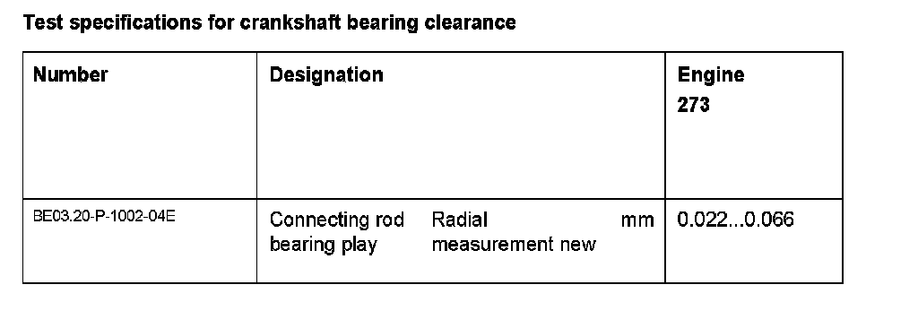 Only the assigned color combinations of the conrod bearing shells (see table) may be installed together. The sequence of the individual color combinations on the connecting rod bearing journals can be selected at random.