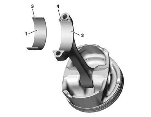 The anti-twist locks (3) of the connecting rod bearing shells (1) must be located in the cutouts (4) of the connecting rod (2) and the connecting rod bearing cap.