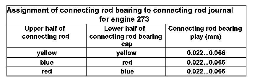 Assignment of connecting rod bearing to connecting rod journal for engine 273: