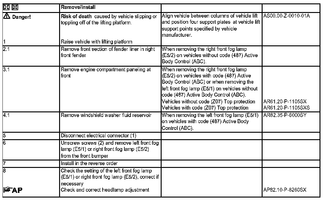 AR82.10-P-5103SX Remove/Install Fog Lamp