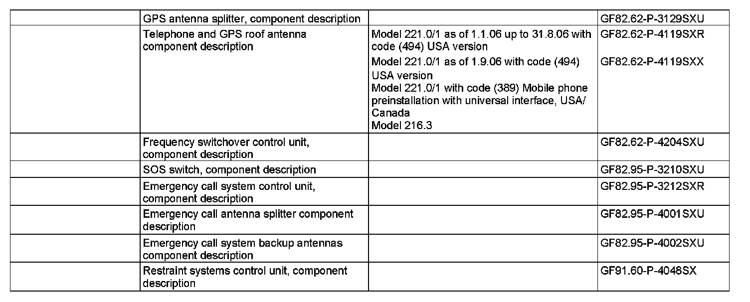 ^ Reception interference (emergency call system left backup antenna (A2/54), emergency call system right backup antenna (A2/55) or telephone and GPS roof antenna (A2/49) (on model 221) or telephone and GPS antenna (A2/49) (on model 216)