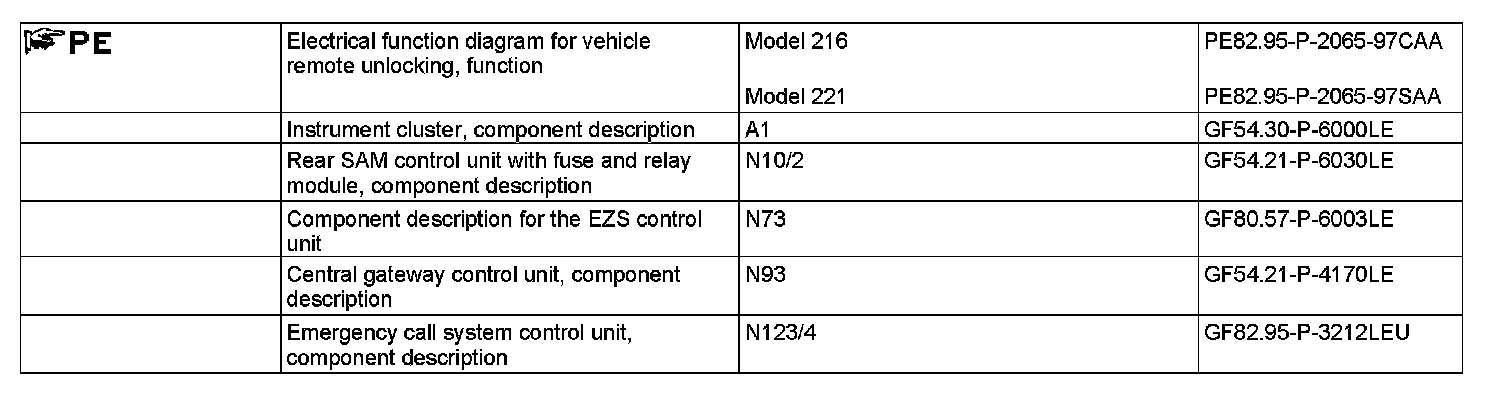 ^ Vehicle-related service Vehicle remote door unlock activated in EIS control unit (N73)