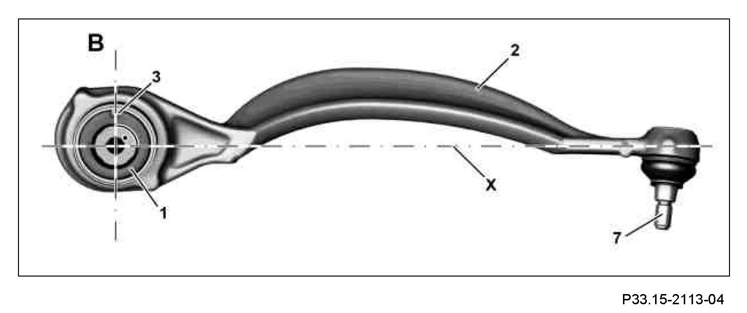 Should the bearing seat have clearly noticeable scores, the torque strut (2) should be replaced