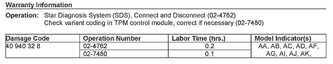 This Service Campaign has been initiated because Daimler AG (DAG) has determined that the Tire pressure Monitoring Control Unit Coding may not meet current specification in the subject vehicles Dealers will check and if necessary update the Tire Pressure Monitoring Control Unit Coding at the next workshop visit.