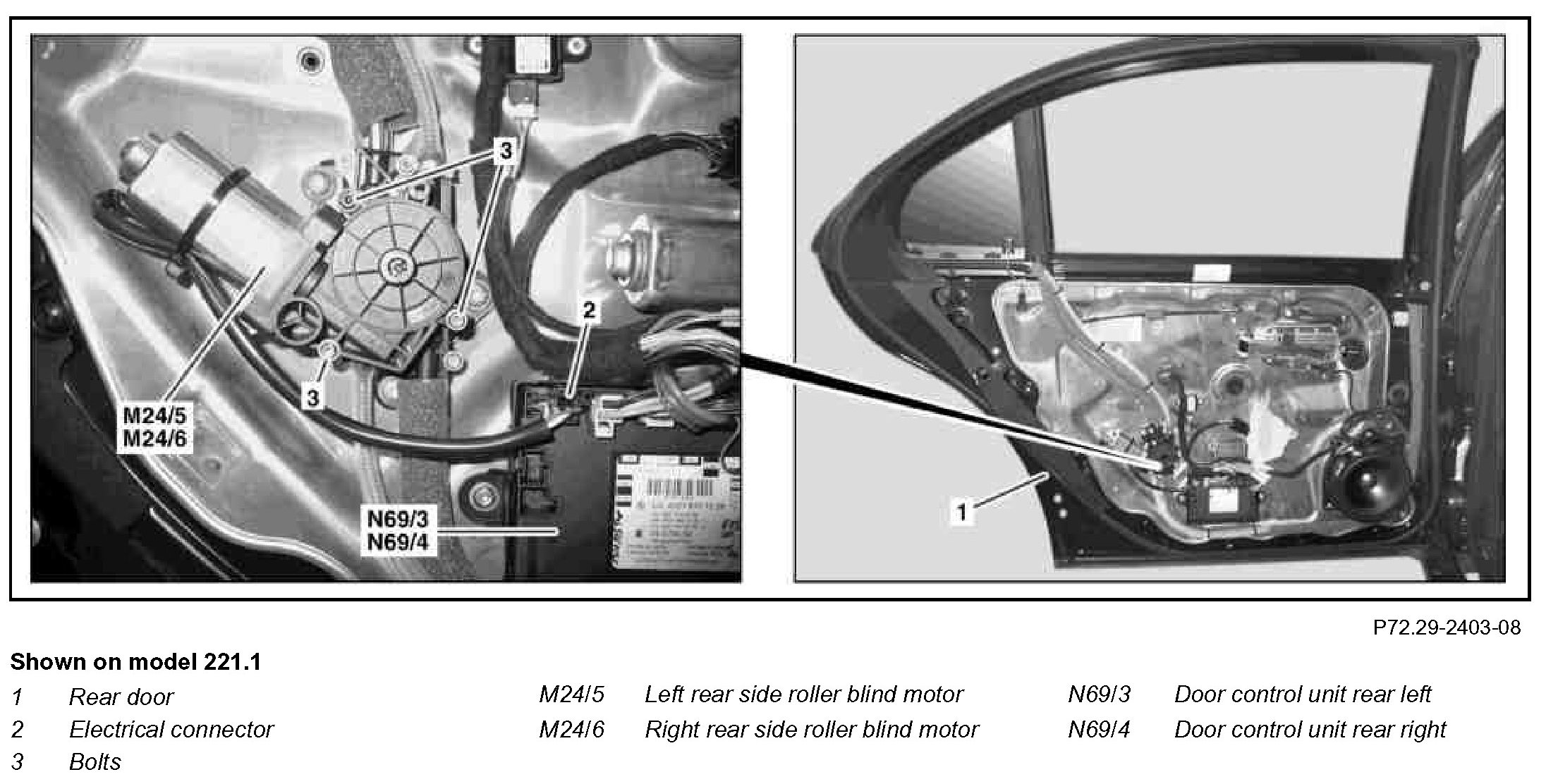 AR72.29-P-1890SX Remove/Install Drive Motor For Rear Door Side Window Roller Blind