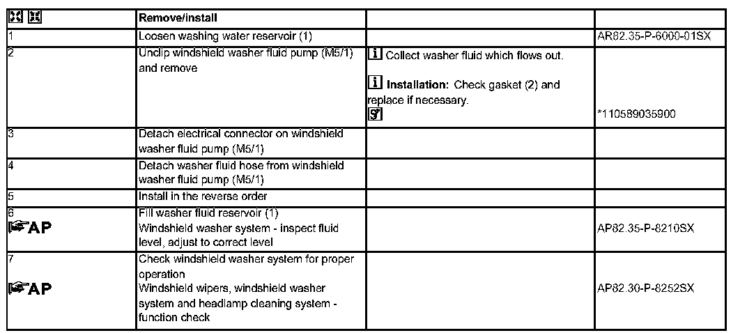 AR82.35-P-6002SX Remove/Install Windshield Washer System Pump