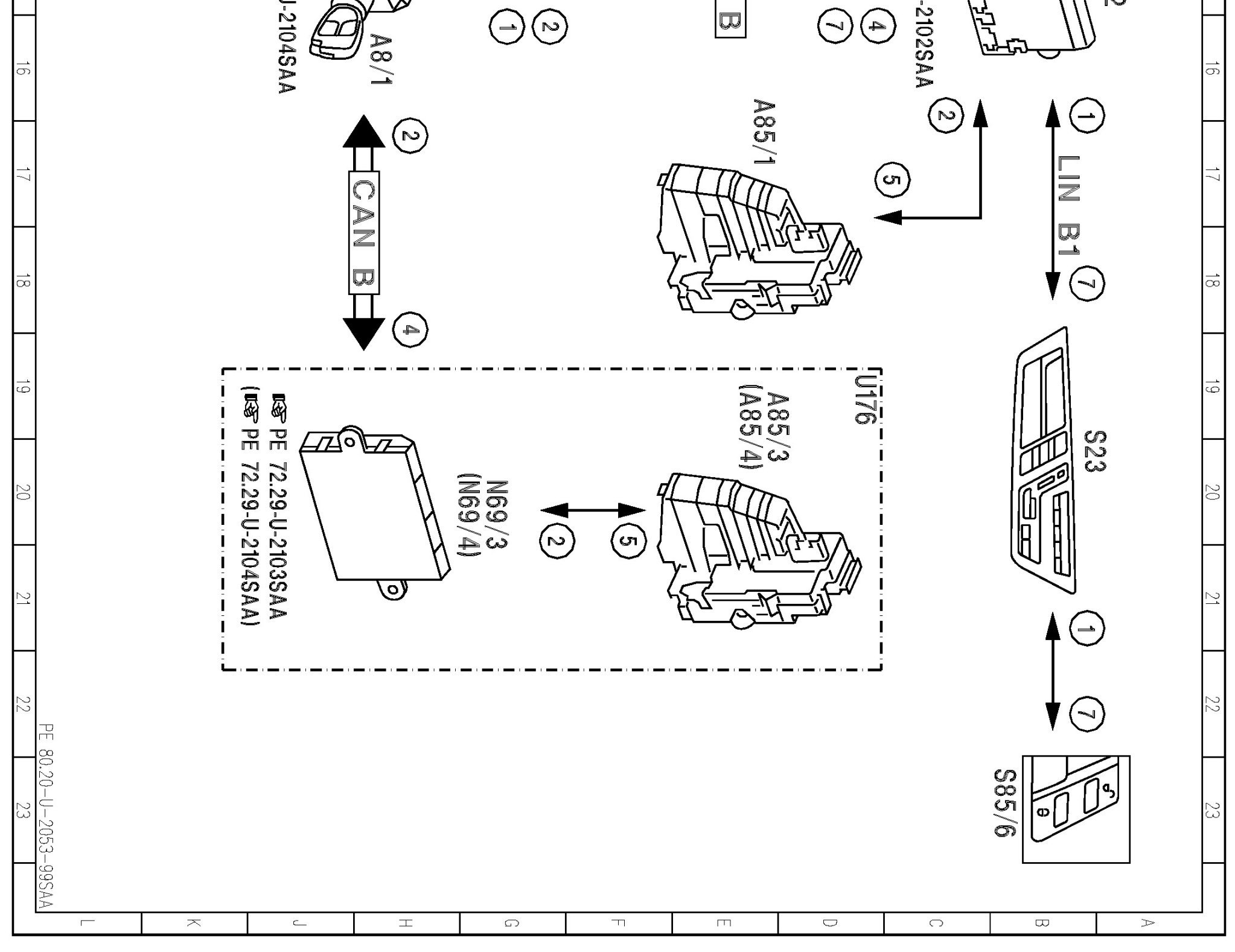 PE80.20-U-2053SAA Electrical Function Diagram For Central Locking System With Inside Switch, Lock And Release
