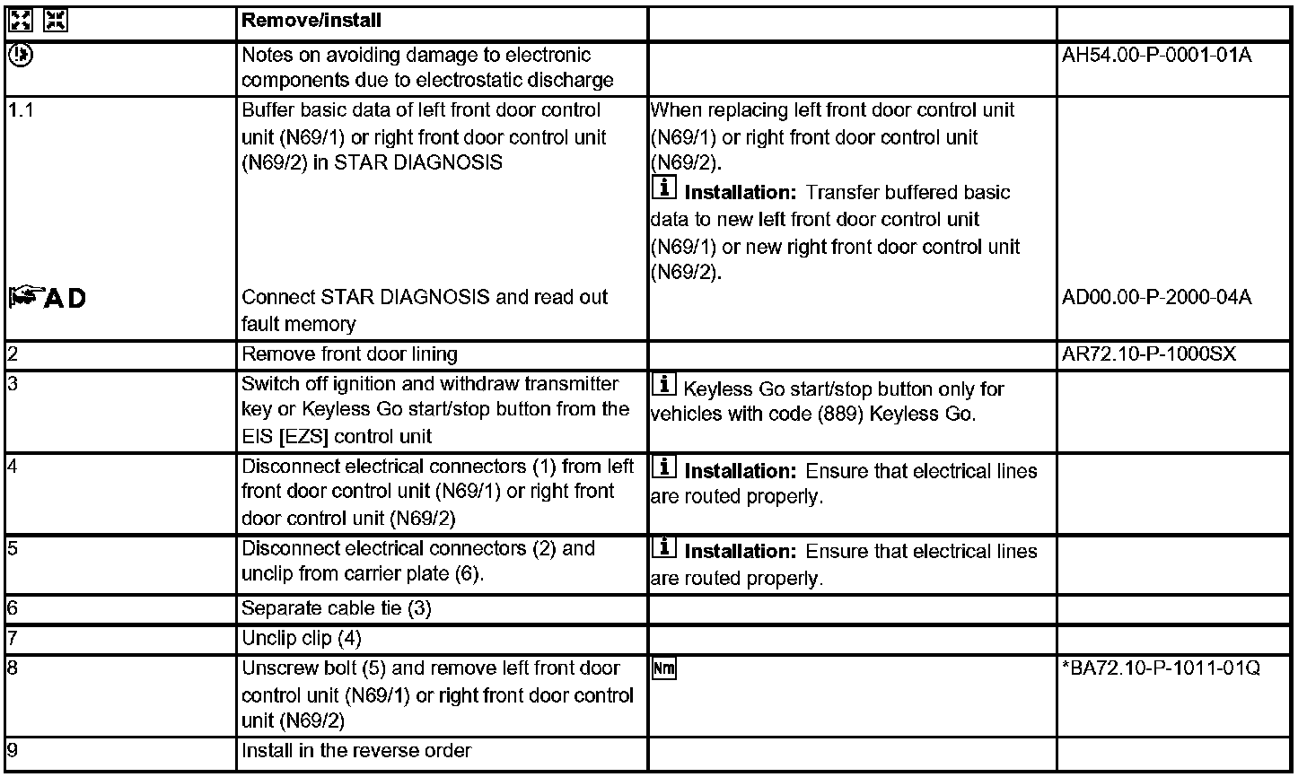 AR72.29-P-1000SX Remove/Install Front Door Control Unit